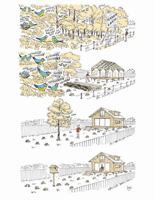 L’un des dessins de Martin Étienne Les dessins de Martin Étienne concentrent avec intelligence et malice les sujets contemporains, offrant un regard perspicace sur les enjeux de l’architecture, de l’urbanisme et de notre environnement. >> Exposés pour l’occasion dans la belle salle communale de Stosswihr, les dessins de Martin Étienne ont fait l’unanimité, parfaitement en lien avec les sujets abordés dans le cadre de notre Univers-Cité Rurale ! |
